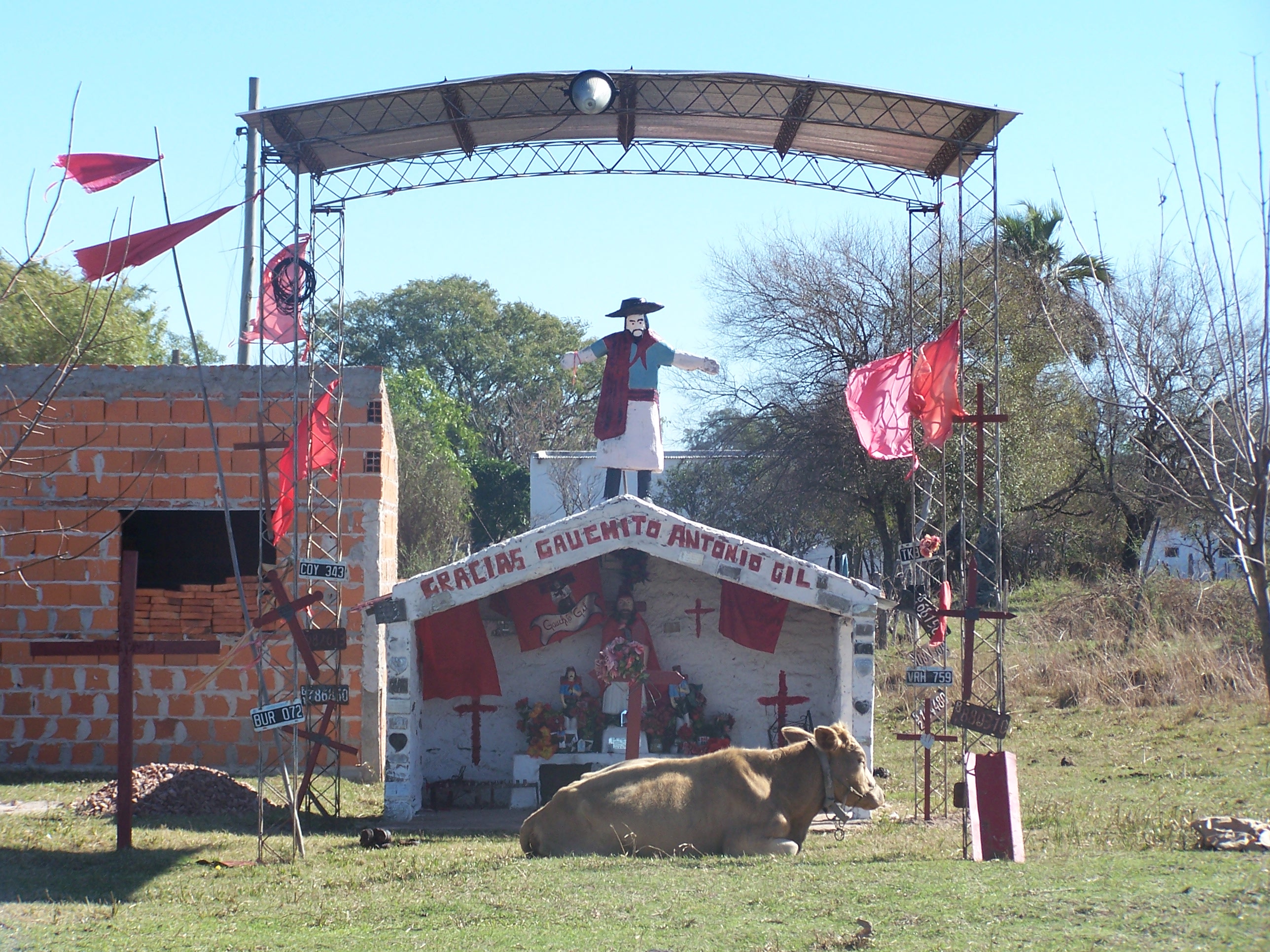 La légende raconte qu’Antonio Mamerto Gil Nuñez, un gaucho travaillant pour le compte d’un grand propriétaire terrien, avait été recruté de force dans l’armée pour participer à la guerre de la Triple Alliance contre le Paraguay voisin. Refusant «de se battre contre ses frères», il avait déserté. Pendant sa désertion, on raconte qu’il volait aux riches estancieros (propriétaires terriens) et répartissait son butin entre les habitants pauvres des alentours. Après un an de fuite, il fut retrouvé et tué par la police. Il avait pourtant prévenu son bourreau : «le sang innocent fait des miracles». Aujourd’hui, le 8 janvier, jour anniversaire de sa mort, des milliers de fidèles se rendent en son honneur à « La Cruz Gil », le sanctuaire de Mercedes, au cœur de la province de Corrientes.